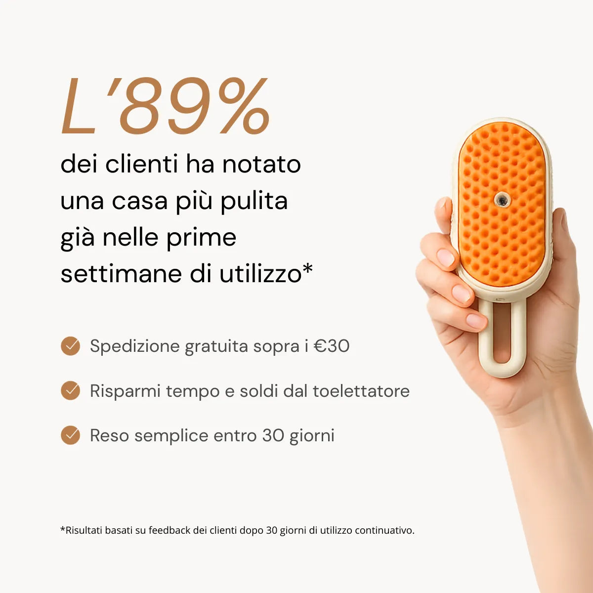 I risultati possono variare in base a tipo di pelo, periodo di muta e frequenza di utilizzo.